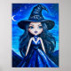 Dieses Fantasy-Poster besticht durch eine zauberhafte Hexe mit fließendem dunklem Haar und durchdringenden blauen Augen, einem sternenblauen Kleid um Mitternacht und hohen Hexen, die unter einem zauberhaften mondbeleuchteten Himmel hellen. Fertig als Mixed Media Art Print.