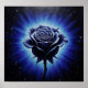 Dieses Fantasy-Poster zeichnet sich durch eine atemberaubende dunkelblaue Rose aus, die mit strahlend blauem Licht strahlt, Set vor kosmischem Sternenhimmel, symbolisiert Mysterium, Eleganz und die unendliche Schönheit des Universums. Fertig als Ölfarbe Kunstdruck.
