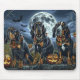 Entfesseln Sie den unheimlichen Geist mit diesem unheimlichen Halloween-Design, das eine Hundepackung unter einem dunklen, mondbeleuchteten Himmel bietet, umgeben von fliegenden Fledermäusen und glühenden Kürbissen. Ideal für diejenigen, die mit ihren wütenden Freunden eine Touch voller Furcht Liebe haben!