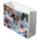 Bluetick Coonhound läuft im Schnee mit Weihnachten Große Geschenktüte
