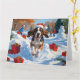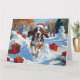 Bluetick Coonhound läuft im Schnee mit Weihnachten Karte