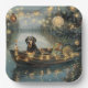 Set segelt mit dieser sehr detaillierten Abbildung in den Zauber der Urlaubssaison und zeigt einen stolzen Hund, der in einem festlich dekorierten Boot sitzt und über einen ruhigen Weihnachtssee gleitet. Die Lichter der nahen Kiefernbäume reflektieren das Wasser und warmen, festlichen Glanz, der das gemütliche Ambiente verstärkt. Die Ornamente versetzen sich von den Seiten des Bootes, während die Laternen leuchten und eine Szene schaffen, die das wahre Wesen der Weihnachtswärme und -freude einfängt. Dieses nostalgische Kunstwerk bringt eine Touch von Urlaubsmagie in jeden Raum, perfekt für diejenigen, die den Geist der Saison schätzen.