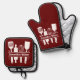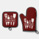 Ein rotes Oven Mitt & Pot Holder Set mit geblüht Backutensilien, Monogramm mit Whisk, Spatula und rollendem Button und anpassbarem Text. Ideal für den Muttertag, um Ihrer Mutter, einem Koch zum Kochen oder Konditorei oder für Neuvermählte ein Geschenk zu machen!