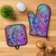 Blühen Abstrakte Lila und blaue Blume Ofenhandschuh & Topflappen-Set