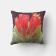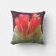 Das Bild auf diesem Throw Kissen ist ein Originalfoto von ZoeSPEAK einer agave Pflanze, die im Garten blüht. Die untergehende Sonne leuchtet die Vermilion roten Blütenblätter der bald offenen Blume auf und verleiht ihnen ein warmes gelbes Licht vor dem dunklen Hintergrund. Die scheibenförmigen Blätter des Agavs umschließen die Blume mit ihrer weichen, bläulich grünen Farbe.