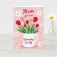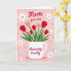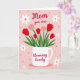 Das vordere Design zeigt eine weiße Keramiktasse, die einen vollen Strauß stilisierter Tulpen enthält, arrangiert wie ein liebevolles Geschenk für jemanden Besonderes ❤️. Rote Tulpen mischen sich mit zarteren rosa Blüten, die sanfte Streifen aufweisen, und die grünen Stiele und Blätter fächern sich in einem ordentlichen, liebevollen Büschel aus. Der Hintergrund ist pastellrosa, bestreut mit kleinen weißen Gänseblümchenformen und gepunkteten Akzenten, die eine leichte, freundliche Textur hinzufügen. Oben erscheint eine kurze Dankesbotschaft in einem tieferen Rosa, zentriert und leicht zu erkennen. Eine zweite Textzeile sitzt auf der Tasse selbst in demselben tieferen Rosa, als ob die Tasse ein süßes Kompliment ausspricht. Das gesamte Layout fühlt sich wie ein stiller Dank an, der zwischen engen Freunden oder
