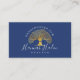 Elegantes, Imitat Gold und Marineblau blühende Baumhaus Logo Visitenkarte Design. Wir haben dieses schöne Baumlogo entworfen mit einer Tür, die im Baumstamm entworfen wurde. Der tiefblaue Hintergrund ergänzt das goldene Logo der Imitate wunderschön. Personalisieren Sie sich mit Website, Namen und Tagline. Die Rückseite ist sauber und minimalistisch gestaltet. Sie können die Textgröße, den Schriftart, die Farben und die Hintergrundfarbe so anpassen, dass Sie Ihren eigenen Vorlieben Anzug geben. Alle Illustrationen und Logos in unserem Baumhaus-Logo und Visitenkartendesign sind handgezeichnet Originalkunstwerke von Moodthology.