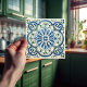 Die blühende Azure Keramik Print Tile verkörpert das Wesen des mediterranen Charmes, mit einem symmetrischen Blumendesign, das blüht in einer Harmonie von azurblau und üppig grün. Dieser Aufdruck zeichnet die feine Handmalerei traditioneller Keramiken auf und präsentiert eine flache und glatte Wiedergabe, die die lebendigen Farben und Details des Originals bewahrt. Es ist eine ideale Wahl für jeden, der die frische und ruhige Atmosphäre eines mediterranen Gartens in seinen Wohnbereich bringen möchte, sei es als Deko-Küche-Backsplash, als Bad-Highlight oder als dekorativer Akzent anderswo.