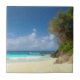 Schöne blühende Bäume am Meer.. ein schöner, warmer Strand mit sanften Wellen und goldenem Sand.