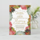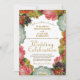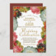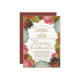 Diese wunderschöne Hochzeitseinladung besticht durch eine elegante Goldprägung, umgeben von Viktorianischen Blume in Herbstfarben. Die Farbtöne sind goldfarben, weiß, orange und pflaumenfarben. Der Hintergrund ist weiß für die Vorderseite und eine Bordeaux-Marsala auf der Rückseite, was ihm ein elegantes Boho-Ambiente verleiht.