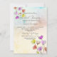 Eine individuell gestaltbare Brautdusche, die Eleganz und Charme ausstrahlt. Das Design ist in einem wunderschönen Aquarell in sanften Pastelltönen in Blau, Gelb und Beige gehalten und schafft eine romantische und intime Atmosphäre. Oben und unten verzieren sie Bilder von blühenden Blume. Jede Blume hat schlanke, grün-braune Stiele, die anmutig gebogen sind. Die Blume haben blühende Blütenblätter, die jeweils in verschiedenen Farben dargestellt sind, darunter Gelb, Rot, lila und Pfirsich. Die Blätter werden mit dünnen, dunklen Linien umrissen, um der Abbildung Definition und Details hinzuzufügen. Die Einladungsdetails sind in einem eleganten Schriftart-Stil geschrieben und laden die Gäste ein, den fröhlichen Anlass für die Braut zu feiern. Die Veranstaltungsdetails inklusive Datum, Uhrzeit und Ort können individuell angepasst werden, sodass diese Einladung für Sie einzigartig ist.