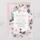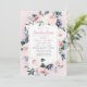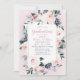 Ein geometrischer Rahmen, umgeben von botanischen Aquarellblumen und Grünpflanzen in sanftem Weiß und Marine, modern, feminin und elegant Abschlussfeier Einladungen.