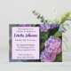 Diese Einladung enthält ein Foto von wunderschönen lila und blauen Hydrangea-Blume, die entlang einer Betontreppe blühen. Der Text kann an die Bedürfnisse Ihrer Veranstaltung angepasst werden.