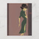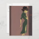 Blaue lila Rahmen geben die Tiefe dieses Bildes. Hinzu kommt noch ein violetter Hintergrund, die Dame steht in einem helleren Raum. Die Dame jedoch sieht nach hinten, was mehr Distanz und Rätsel gibt. In einem dunkelgrünen Kleid wird die Figur schlank und elegant dargestellt, als ob etwas über ihren Geist blinkte, um ihren Fortschritt zu stoppen.