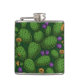 Blühende Opuntia auf dunkelgrün Flachmann