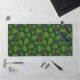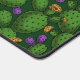 Blühende Opuntia auf dunkelgrün Schreibtischunterlage