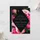 Elegante blumengeschmückte Einladungen mit Ihren Hochzeitsdetails in weißer Schrift in einem Diamantenrahmen. Der Rahmen ist mit schönen, lebhaften, rosa und rot-rosa Pfannkuchen mit üppig grünen Blätter umgeben. Die Einladungen zur Pony-Hochzeit kehren zu einem hellrosa Hintergrund zurück, der Platz für zusätzlichen Text und Bilder bietet.
