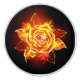 Blühende Rose aus Feuer und Flamme auf schwarzem Hintergrund.