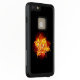 Blühende Rose aus Feuer und Flamme auf schwarzem Hintergrund.