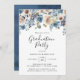 Die Einladungen der atemberaubenden Blütenabschlussfeier mit Blütenblumen, üppiger Vegetation und einem modernen Kalligraphie-Schriftart sind mit Blumen und Blumen geschmückt. Auf der Rückseite der Einladung befindet sich ein tiefblauer Aquarellhintergrund. Personalisieren Sie die Einladungen für den Blumenabschluss, indem Sie den Namen und das Party des Absolventen hinzufügen, um eine Einladung, die Ihre Gäste beeindrucken wird.