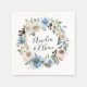 Unsere eleganten personalisierten Papierservietten verfügen über einen blumengeschmückten Kranz aus antiken, weißen und indigoblauen Aquarellfarben-Rose mit gedämpften grünen Blätter. Personalisieren Sie die Servietten, indem Sie Ihre Namen für ein Design hinzufügen, das Ihre Gäste beeindrucken wird! Entworfen, um sich mit unserer Hochzeitskollektion Blooming Beauty abzustimmen.