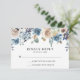 Stilvolle und elegante RSVP-Karten mit einem oberen Rand aus weißen, beigen und blauen Blumen, die von üppiger Vegetation hervorgehoben werden. Personalisieren Sie das Design, indem Sie Ihre Hochzeitsdetails. Die schicken Hochzeitskarten sind perfekt für Hochzeitsfeiern im Frühjahr und Sommer und wurden so konzipiert, dass sie sich mit unserer Hochzeitskollektion Blooming Beauty abstimmen.
