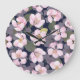 Blühender Apfel: Dunkelblaue Wasserfarbe Große Wanduhr