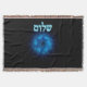 Ein elegantes Design mit leuchtendem blau-weiß-hebräischen Textlesen, "Shalom" (ש ו ם - Ruhe), überlagert auf einem blauen, geätzten Fraktal eines Stern von David.