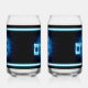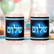 Blau-Weiß-hebräische Textlektüre, "Shalom" (ש ל ו ם - Frieden), überlagert auf einem eleganten, blauen, geätzten Fraktal eines Star of David. Passen Sie Ihren eigenen Text auf der Rückseite an.