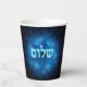 Blau-Weiß-hebräische Textlektüre, "Shalom" (ש ל ו ם - Frieden), überlagert auf einem eleganten, blauen, geätzten Fraktal eines Star of David. Fügen Sie auf der Rückseite Ihren eigenen Text hinzu. .