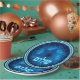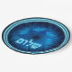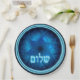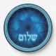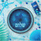 Ein elegantes Design mit leuchtendem blau-weiß-hebräischen Textlesen, "Shalom" (ש ו ם - Ruhe), überlagert auf einem blauen, geätzten Fraktal eines Stern von David.