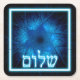 Ein elegantes Design mit leuchtendem blau-weiß-hebräischen Textlesen, "Shalom" (ש ו ם - Ruhe), überlagert auf einem blauen, geätzten Fraktal eines Stern von David.