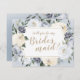 Ein geometrischer Rahmen, umgeben von botanischer Blüte und Grün in sanft gelb, staubblau, grau, elegant und romantisch, großartig "Werden Sie meine Brautjungfrau sein" Überbrückungskarte für moderne Hochzeit, romantische Hochzeit und botanische Gartenhochzeit. Sehen Sie sich alle passenden Stücke in der Sammlung an.