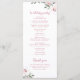 Blühendes botanisches Hochzeitsprogramm in Rosa Menükarte