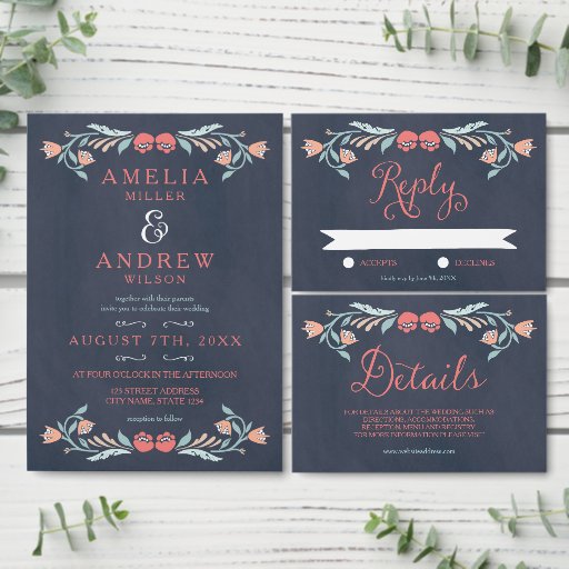 Bluish Chalkboard Floral Bridal and WeddingDesignt von Nora A
