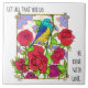 Hübsche dekorative Blumenziegel (rote Rosen mit blauem Vogel) mit Schriftzügen von 1 Korinthen 16:14 "Lass alles, was du mit Liebe machst."