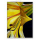 mit originellem Design aus Aquarellmalerei von der Blume Sacha Grossel aus gelber, goldener Lilie. Dieses botanische Design der goldgelben Lilienblätter vor schwarzem, dunklem Hintergrund ist abstrakt und dramatisch. Dieses Blumendesign zeigt die Blume in nahem Up, Makroform und die leuchtenden, lebendigen Farben machen sie zu einem künstlerischen, ungewöhnlichen, abstrakten Design.