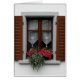 Fensterrahmen und Fensterläden mit roten Blume in Vaduz, Liechtenstein.