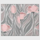Ein Blumenmuster mit weichen rosa Tulpen vor einem abgestuften grauen Hintergrund.