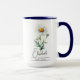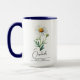 Geburt Monat geblümt April Daisy Tasse mit einer Illustration einer daisy Blume. Unter der Blume wird der Name in einem eleganten Script-Schriftart geschrieben. Unter dem Namen wird "April - Daisy" Staaten, was darauf hinweist, dass der Geburtsmonat April ist und die Blume der Geburt der Tag ist. Es ist ein personalisierter Schlamm, der als nachdenkliches Geschenk für jemanden geboren im April geschaffen wurde.