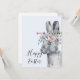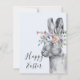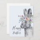 Hübsches graues Aquarellbunny mit Blumenkronenbild und anpassbarem Happy Oaster Text auf pastellblauem Hintergrund