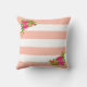Blume auf Korallenrosa und Weißstreifen Kissen