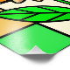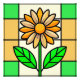eine farbige Glasscheibe, die eine gelbe und weiße Farbe mit grünen Blätter zeigt.
