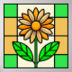 eine farbige Glasscheibe, die eine gelbe und weiße Farbe mit grünen Blätter zeigt.