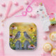 Blume aus Kon und Spange durch einen Holzzaun Pappteller