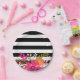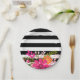 Blume aus schwarzem und weißem Streifen | Fuchsia Pappteller