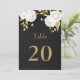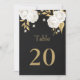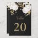 elegante, anpassbare Tischnummer-Karte weiße Blume mit ein paar goldenen Blätter schwarze Tischnummer-Karte