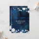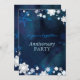 Chic, glitzernde Blume aus weißem Stoff (bedruckt) und Schneeflocken mit rustikalem Hintergrund in Blautönen, die auf individuellen Party Einladungen zum Hochzeitstag entworfen wurden. Sie und Ihre Party werden das einzigartige Winterdesign lieben! Stellen Sie die Zahl für das 25., 30., 35., 40., 45. oder 60. Hochzeitstag ein. (Kontaktieren Sie ujean4791@gmail.com für benutzerdefinierte Arbeiten und/oder passende Elemente)