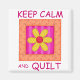 Zeigen Sie Ihre Liebe des Quilting mit diesem lustigen und farbenfrohen Quilt-Block mit der Ausrufung von "Behalt Calm and Quilt". Dieses Design ist eine originelle Quiltkunst mit einem farbenfrohen Patchwork-Block aus appliqué-Blume. Das Wort "quilt" ist leicht zu einem anderen Wort Ihrer Wahl zu wechseln. Das Quilt-Design ist in lebhaften und dynamischen Farben in Orange, Gelb und Rosa gehalten und bietet eine schöne Farbpalette. Vollständig anpassbar, um personalisiert zu werden. Quilt art ist eine originelle Kunst aus Stoff und Quilt Designer Phyllis Dobbs. Diese Kunst ist auf anderen Produkten und in verschiedenen Farbhintergründen erhältlich und steht auch für Behalten Calm-Produkte mit verschiedenen Quilt-Künsten zur Verfügung.