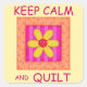 Zeigen Sie Ihre Liebe des Quilting mit diesem lustigen und farbenfrohen Quilt-Block mit der Ausrufung von "Behalt Calm and Quilt". Dieses Design ist eine originelle Quiltkunst mit einem farbenfrohen Patchwork-Block aus appliqué-Blume. Das Wort "quilt" ist leicht zu einem anderen Wort Ihrer Wahl zu wechseln. Das Quilt-Design ist in lebhaften und dynamischen Farben in Orange, Gelb und Rosa gehalten und bietet eine schöne Farbpalette. Vollständig anpassbar, um personalisiert zu werden. Quilt art ist eine originelle Kunst aus Stoff und Quilt Designer Phyllis Dobbs. Diese Kunst ist auf anderen Produkten und in verschiedenen Farbhintergründen erhältlich und steht auch für Behalten Calm-Produkte mit verschiedenen Quilt-Künsten zur Verfügung.
